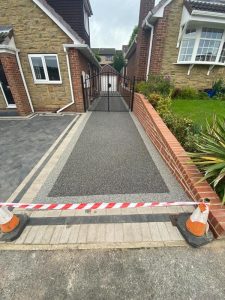 After careful planning and meticulous execution, the ‘after’ photos showcase a stunningly revitalised driveway. The front now boasts elegant granite block paving, intricately laid out and framed by a double natural border that exudes class and style. Additionally, to the side sites an innovative use of silver granite UV resin, known for its durability and striking appearance, is beautifully contrasted by an anthracite border, offering a modern twist to the property’s aesthetic. Our attention to the finer details is what sets Carlton Drives & Patios apart. Each block and resin application were selected for its quality and resilience, ensuring that the driveway not only looks exceptional today but fir for longevity for the years to come as all driveways should.